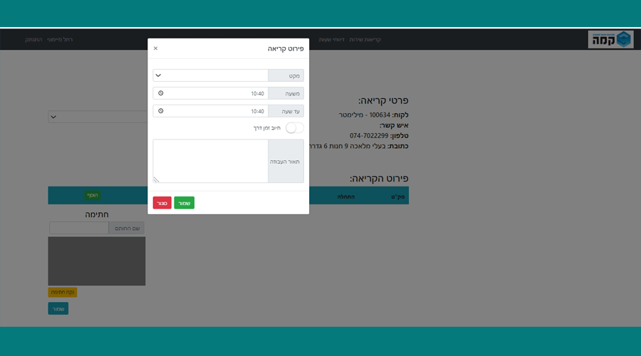 order and organization are in their management. At Qama Pitronot Solutions for Business, we learned on our own operations how important this is. This app came to meet the need a dedicated service for job reporting. The app allows your company to arrange a daily schedule in an orderly and organized manner, per project. Everything